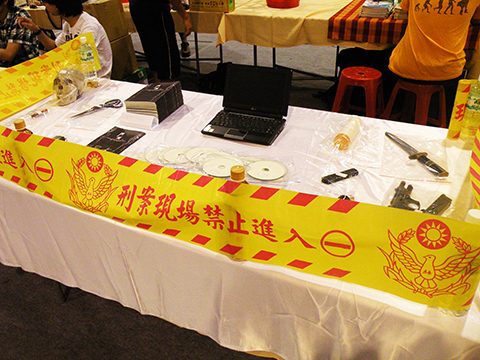 這看似與會場格格不入的刑案現場,便是我們夜想社今天的攤位擺設!