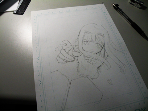 同時刻清醒過來的蕉阿則開始進行其他人物的繪製與上色。直到下午一點時我們離開網咖前往威士家,編輯完文字檔以及替主角上色完畢後,蕉阿接手進行最後的排版工作。