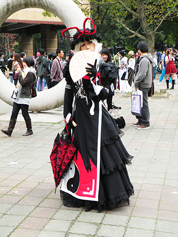 下午之後,這裡得說一件很有趣的事情。之前ff13的時候看到一位八雲紫(身高很高,可能是男性?)的cos,當時她裙擺卡到垃圾,於是想說走過去幫忙拿掉一下。沒想到她這次居然來到我們的攤位,巧合這種事真的很神奇。